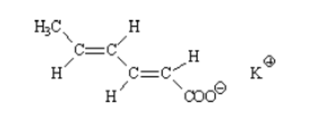 Tên hóa học: Kali sorbat; Muối kali của acid trans, trans-2,4-hexadienoic(1), tên thương mại: Kali sorbat.